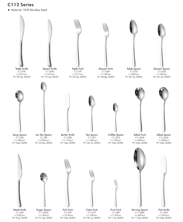 La serie C112 è sapientemente realizzata in acciaio inossidabile 18/8 di alta qualità.