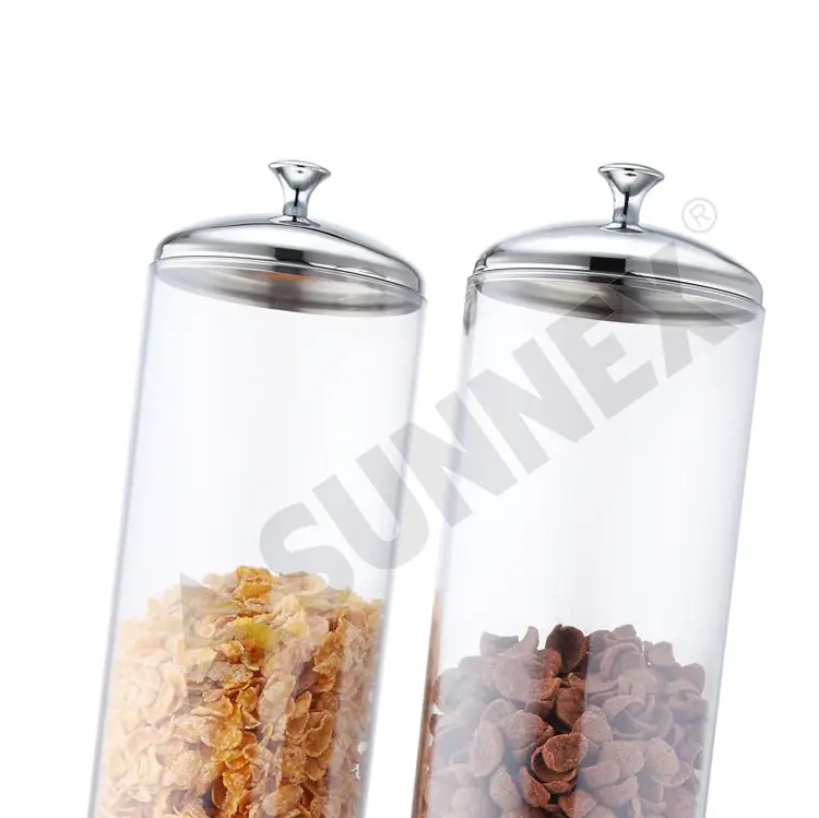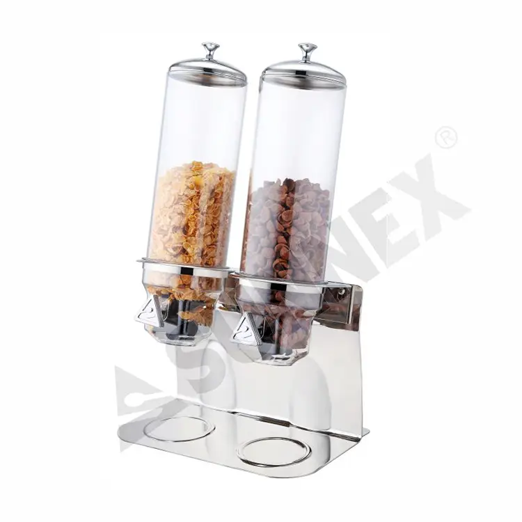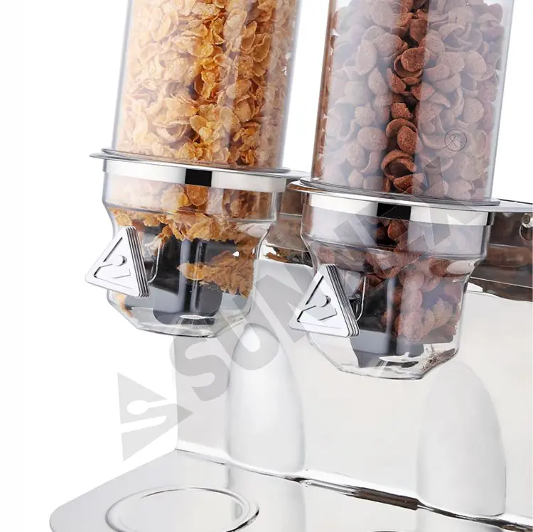 I distributori di cereali di base in acciaio senza sosta con contenitori per PC sono dotati di una robusta base in acciaio inossidabile, costruita per resistere a contesti commerciali affollati come caffè, hotel e aree a buffet, pur mantenendo un aspetto elegante e professionale. Dotato di due contenitori per PC 4LTR, offre un ampio spazio di archiviazione per una varietà di cereali, muesli o snack secchi, mantenendoli freschi e facilmente accessibili.